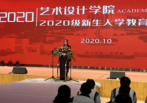 会议伊始,艺术设计学院党总支书记、副院长时晓楠向广大新生发表了热情洋溢的致辞,并代表艺术设计学院全体师生对2020级新生的到来表示热烈欢迎。对艺术设计学院专业设置、学院特色等内容做了全面介绍。