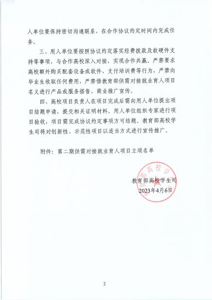 近日,教育部发布了《教育部高校学生司关于公布第二期供需对接就业育人项目立项名单的通知》(教学司函〔2023〕6号),经高校与用人单位联合申报,专家审核等流程,我校共有3个项目获批教育部第二期供需对接就业育人项目立项。
