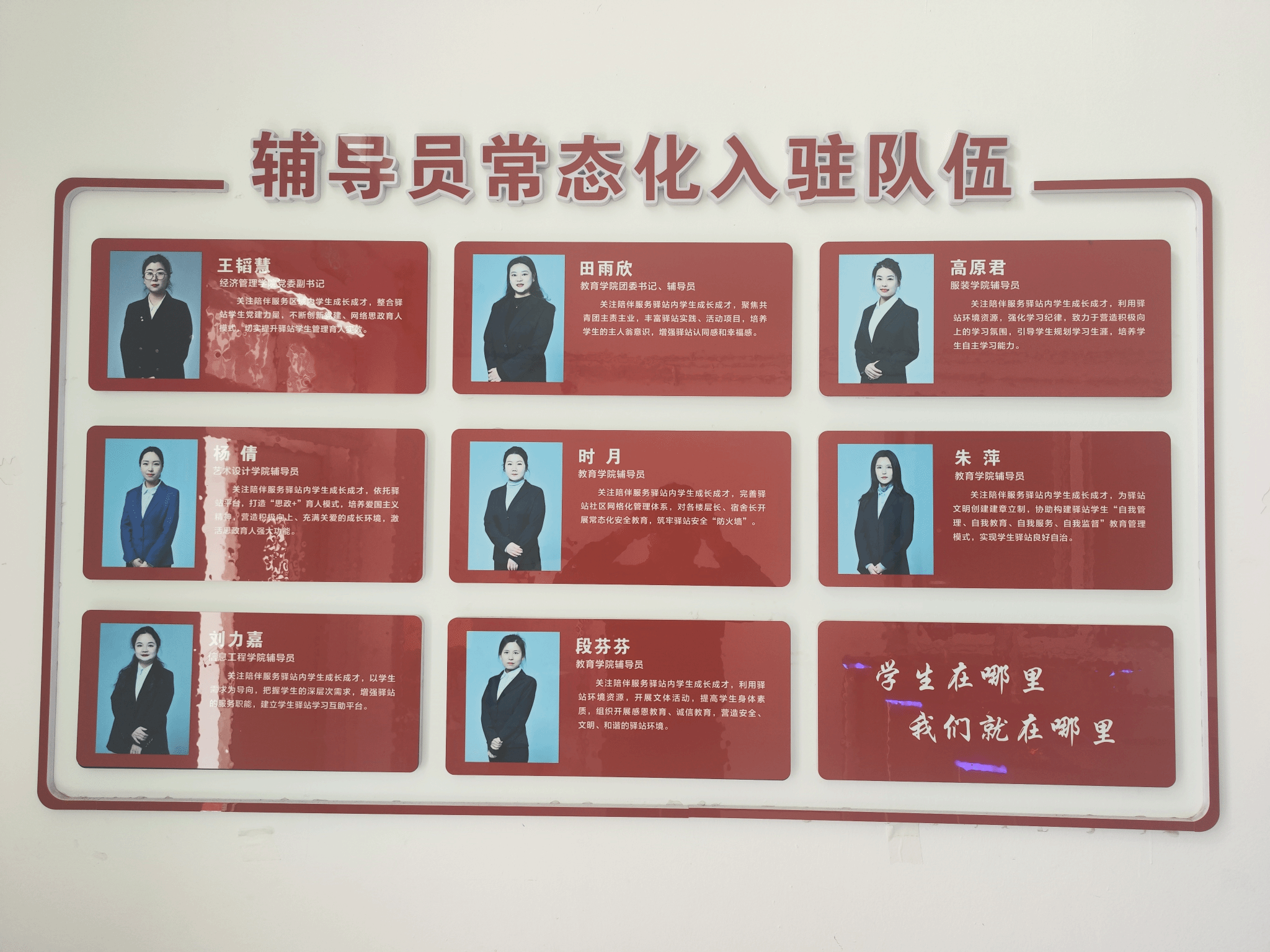 在人员配置方面,学校推动学工队伍全面进驻学生公寓。目前十三栋学生公寓均安排4-6名辅导员入住,Bwin·必赢体育干部、各学院党委副书记等学生工作骨干也深入一线,全面负责学生的思想政治教育、日常事务管理、行为习惯养成及突发事件处置。社区内设有四个辅导员工作室,分别聚焦党建引领、职业生涯规划、心理健康教育和就业创业指导,为学生提供专业化、精准化服务。