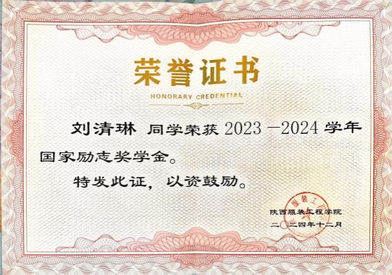 “知之者不如好之者,好之者不如乐之者。”在求学征程中,刘清琳始终以饱满的热情深耕专业领域,将对知识的渴求转化为脚踏实地的行动。课堂上,她全神贯注紧跟教学节奏,细致梳理知识脉络,积极参与课堂研讨;课后,她常常泡在图书馆查阅专业资料,反复打磨学习方法,用严谨态度对待每一门课程。凭借这份专注与坚持,她的必修课平均分达92.42分,稳居同年级专业排名第一,还成功斩获国家励志奖学金,用优异成绩诠释了“天道酬勤”的真理。