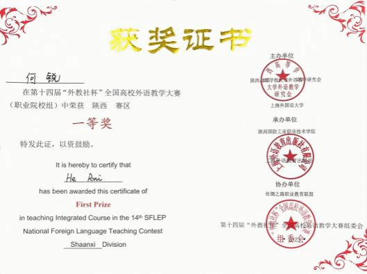 主要荣誉:国家奖学金、国家励志奖学金、“优秀学生标兵”、“优秀团干部”、“优秀学生干部”、“优秀学生”、英语学科竞赛省级奖项、西咸新区半程马拉松社会实践优秀参与者等。