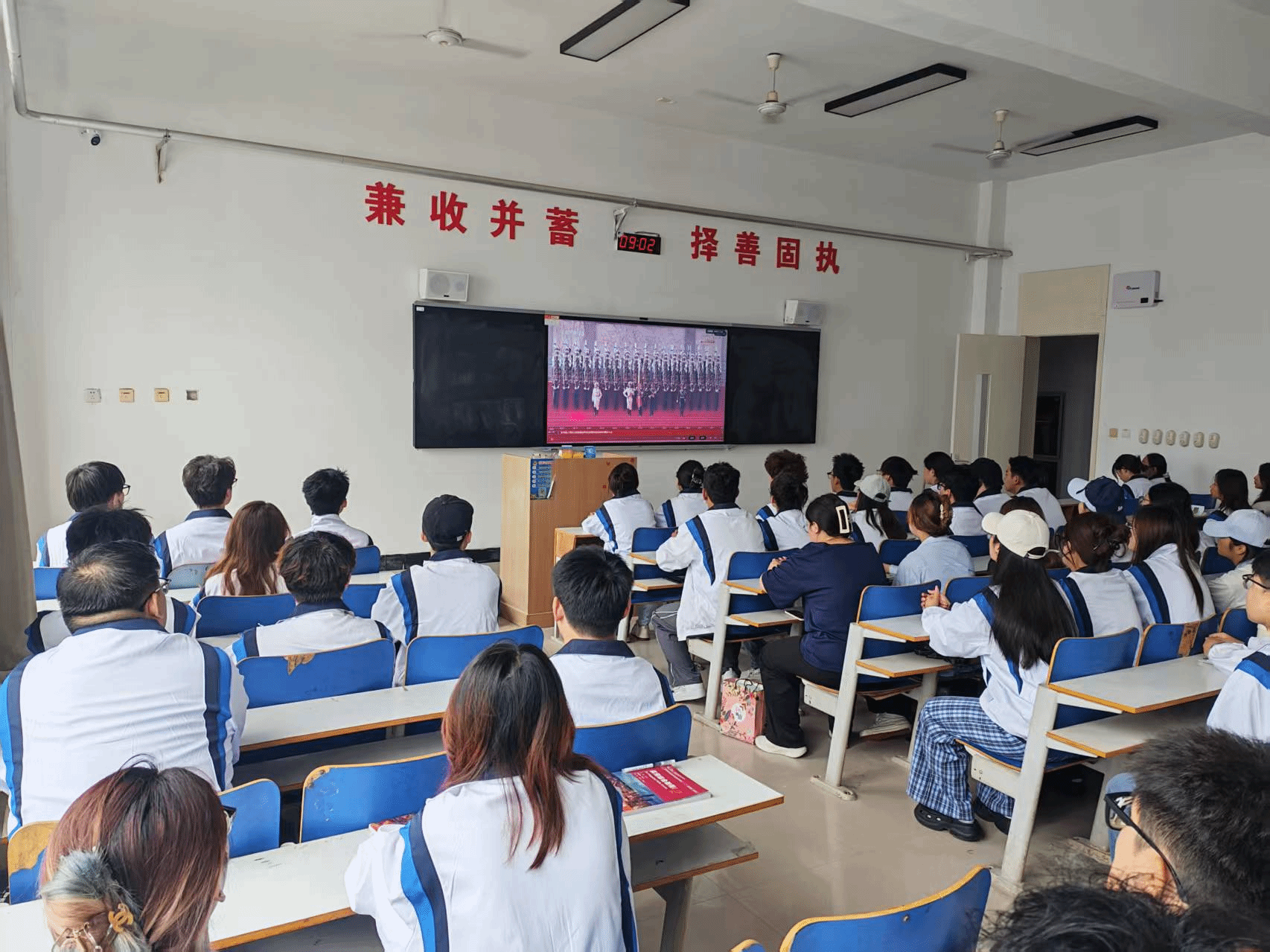 组织收看纪念中国人民抗日战争暨世界反法西斯战争胜利80周年大会是一次生动的爱国主义教育课,是思想政治教育与专业教育相结合的宝贵机会,也让学生深刻感受到国家强盛和国防现代化的伟大成就。直播结束后,辅导员、学生党员、干部和入党积极分子们心潮澎湃,展开了热烈讨论。