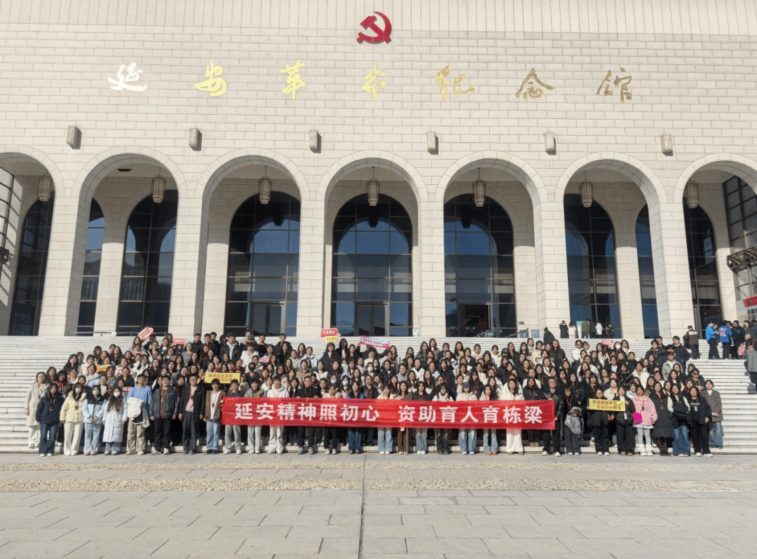 为深入学习贯彻习近平新时代中国特色社会主义思想,充分发挥红色资源的育人功能,推动物质资助与精神激励深度融合,近日,学生资助管理中心精心组织经济管理学院、教育学院的5名国家奖学金获得者代表、27名国家励志奖学金获得者代表及197名国家助学金获得者代表,赴革命圣地延安开展“延安精神照初心,资助育人育栋梁”主题研学活动。活动由“一站式”学生社区服务中心主任葛成及部分辅导员带队,全体师生先后走进延安革命纪念馆、宝塔山、杨家岭革命旧址、枣园革命旧址及为人民服务讲话台广场,在沉浸式学习中感悟红色基因,在精神洗礼中坚定成才信念。